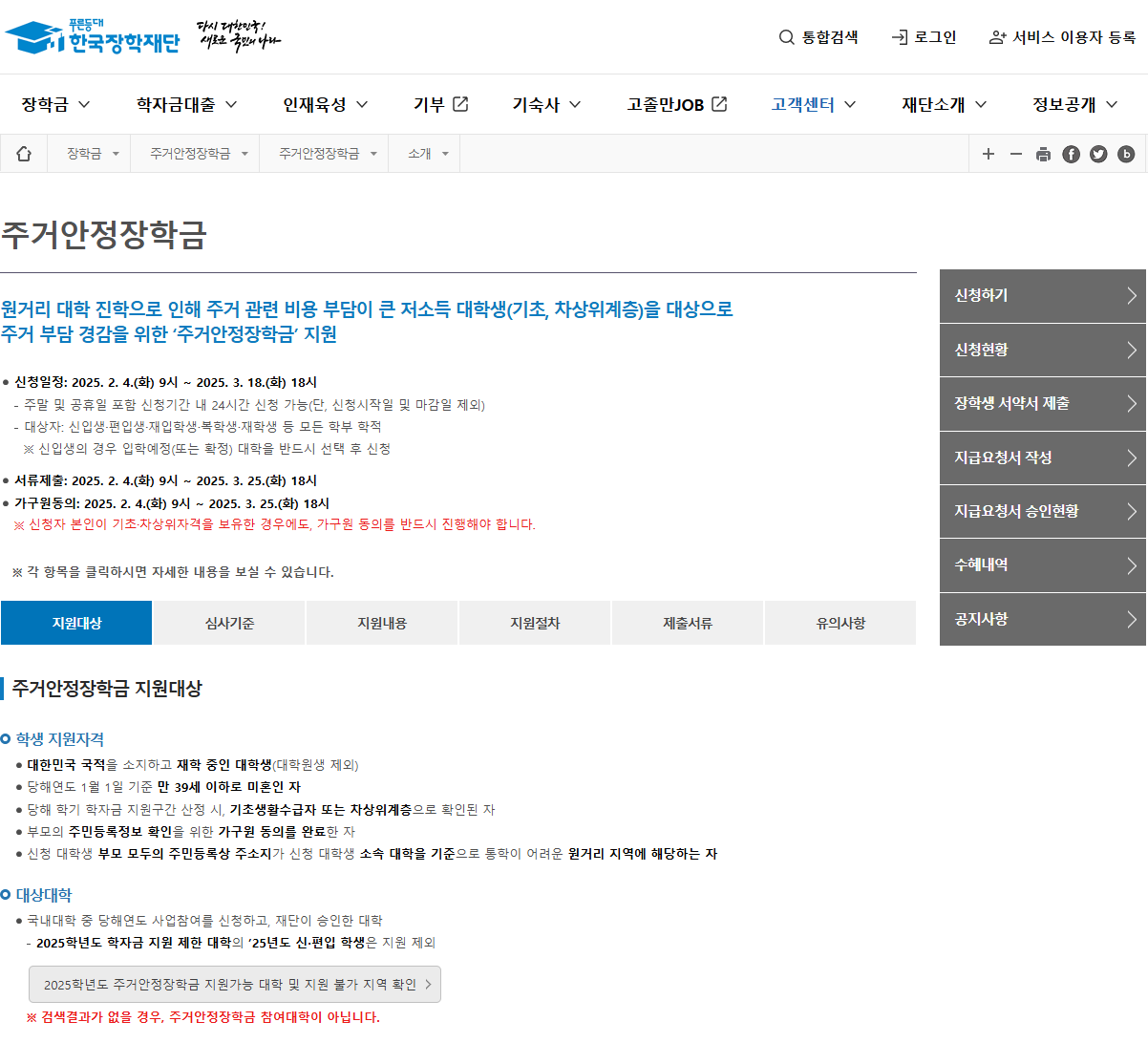 - 신청 기간 확인: 2025년 2월 4일(화) 9시부터 3월 18일(화) 18시까지