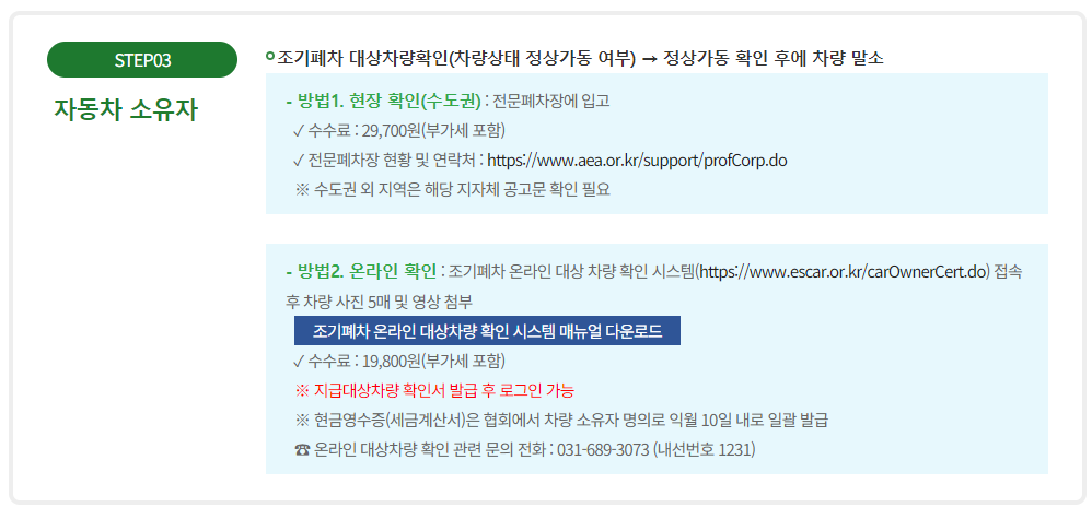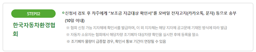 - 대상 선정 및 확인서 발급: 협회에서 신청서를 검토하고, 적합한 차량인지 확인서를 발급합니다.
