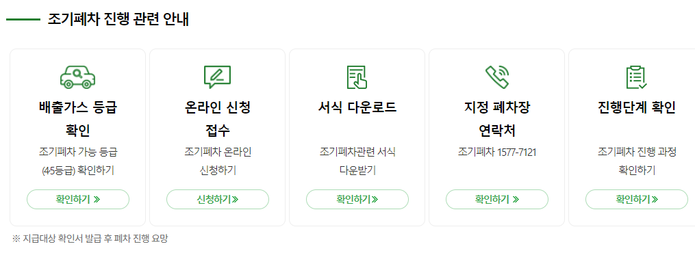 조기 폐차 지원금을 신청하는 과정은 다음과 같습니다: