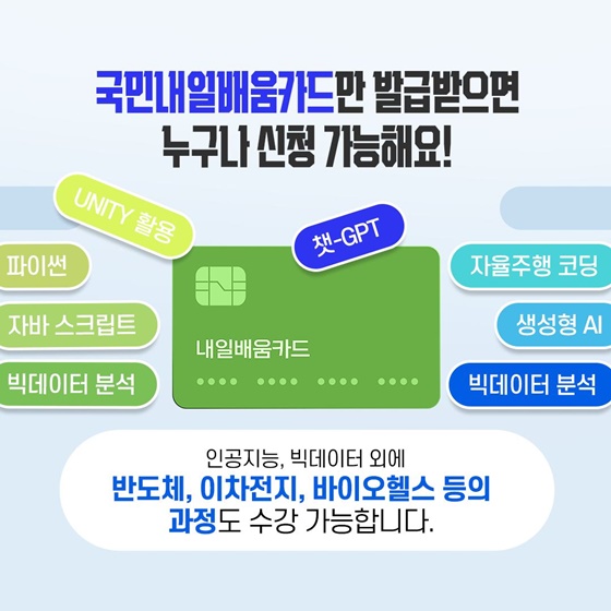 국민내일 배움 카드는 우리의 미래를 위한 투자라고 볼 수 있습니다.