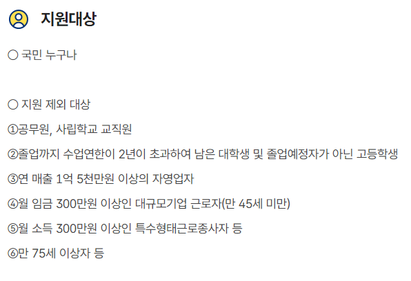 다만, 공무원이나 사립학교 교직원, 졸업까지 2년 이상 남은 대학생 등은 신청자격에서 제외됩니다.