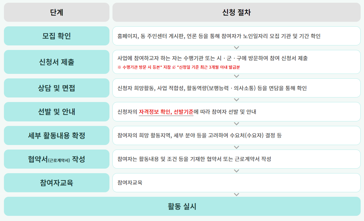 노인일자리의 신청자격을 확인하셨다면, 이제 신청 방법을 알아볼 차례입니다.