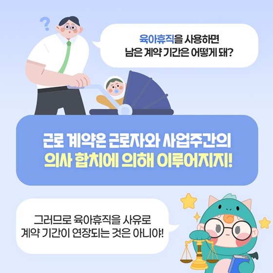 다만, 근로계약이 연장되면 최대 1년까지 육아휴직을 이어서 사용할 수 있습니다.