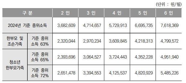 한부모가정 자격조건의 두 번째는 소득 기준입니다.