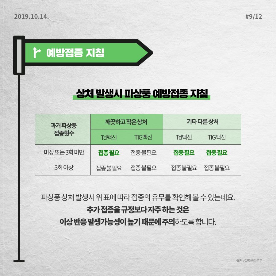 또한, 상처를 입었을 때 마지막 접종 후 5년 이상 지났다면 추가 접종을 고려해야 합니다.