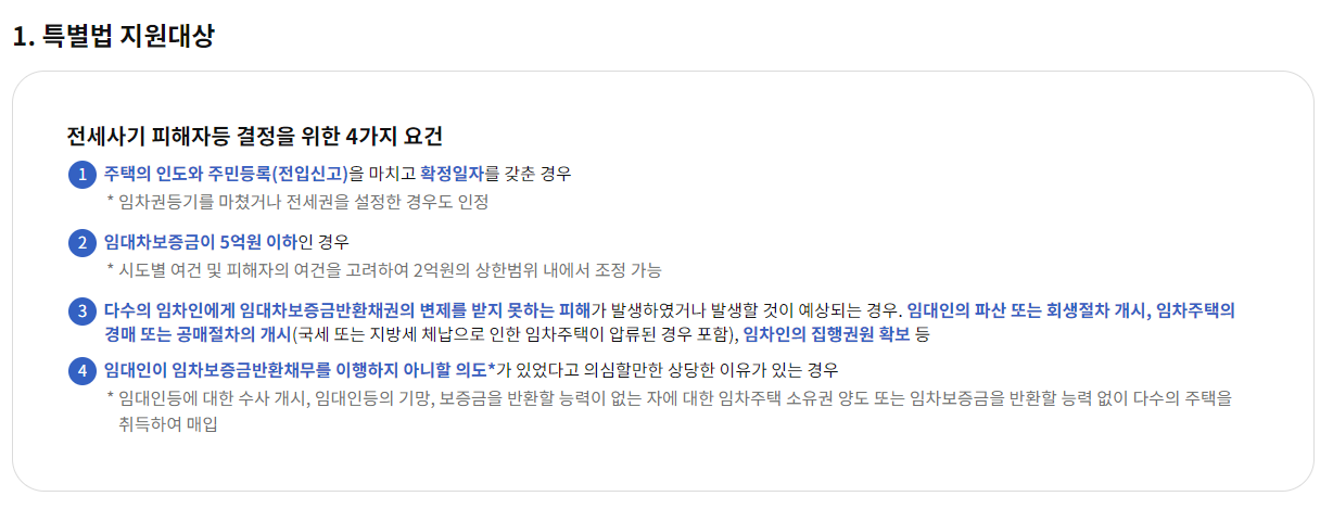 그리고 만약의 경우를 대비해 전세사기 특별법에 따른 지원 제도도 잘 알아두세요.