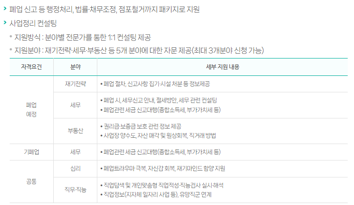 폐업 과정에서 필요한 여러 가지 도움을 종합적으로 제공하고 있어요.