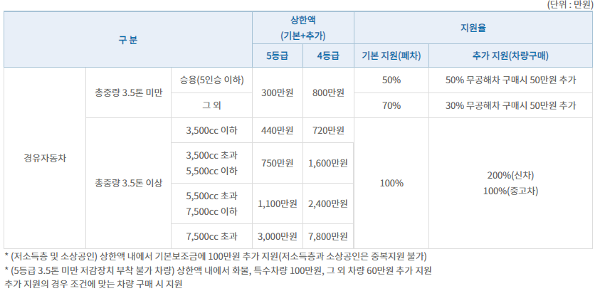 - 총중량 3.5톤 미만 4등급: 최대 800만원